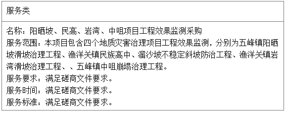 | 陽曬坡、民高、巖灣、中咀項目工程效果監測采購成交結果公告 |